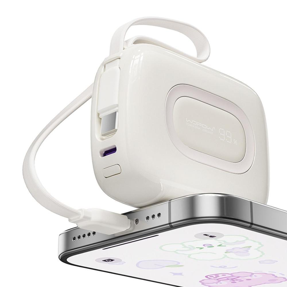 شاحن متنقل wopow مع سلكين متصلين بالشاحن