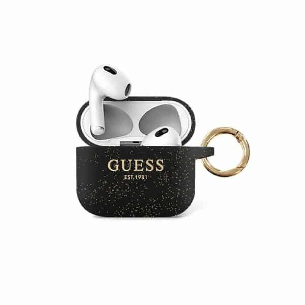 كفر حماية من GUESS للايربودز 3 سيليكون Glitter اسود